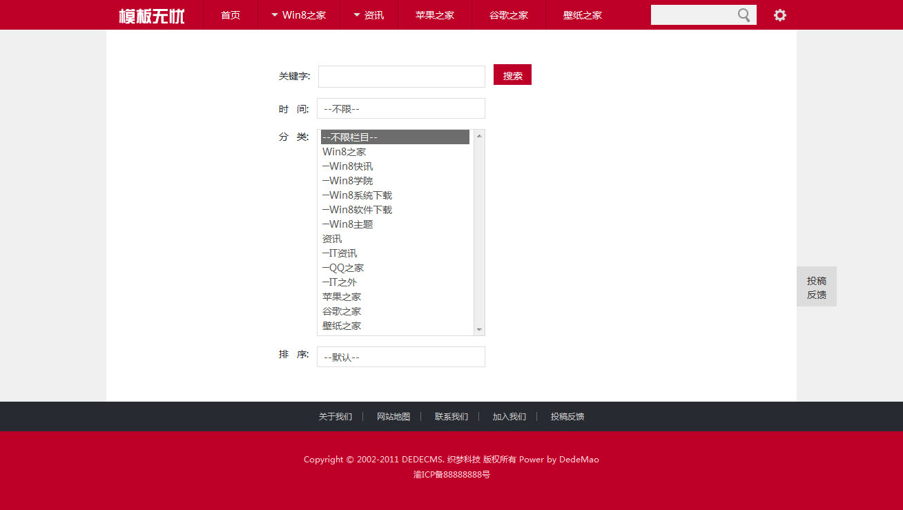 復(fù)制本頁鏈接| 搜索精仿IT之家織夢模板(紅藍(lán)兩色)| DedeCms教程| DedeCms模板| Dede模板| 織夢模板| dedecms