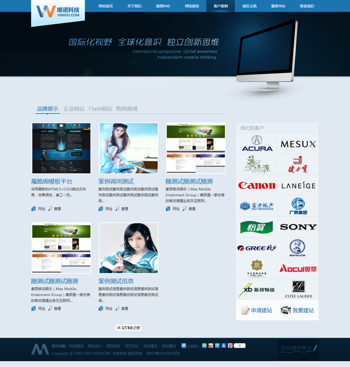 本織夢模板適合網絡建站公司和網站設計制作個人工作室等企業使用,華麗大氣的藍色配色,整站超級大氣,簡單而不奢侈。基于DEDECMS5.7 UTF-8設計,模板可以自由導入導出。如果是GBK請自行轉換編碼,或者讓我們協助。