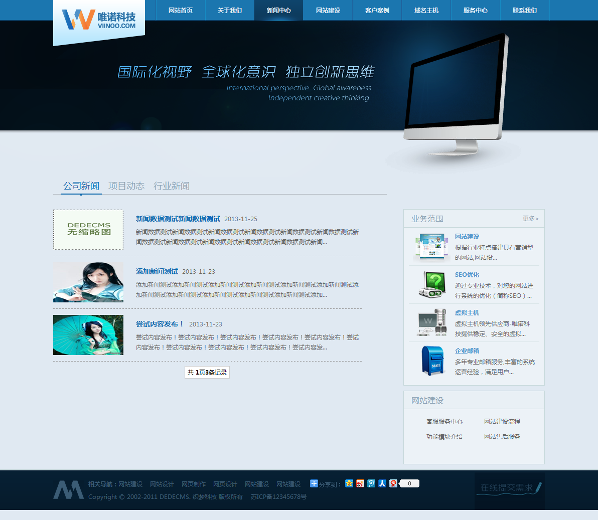 織夢藍色大氣dedecms5.7網絡公司網站模板