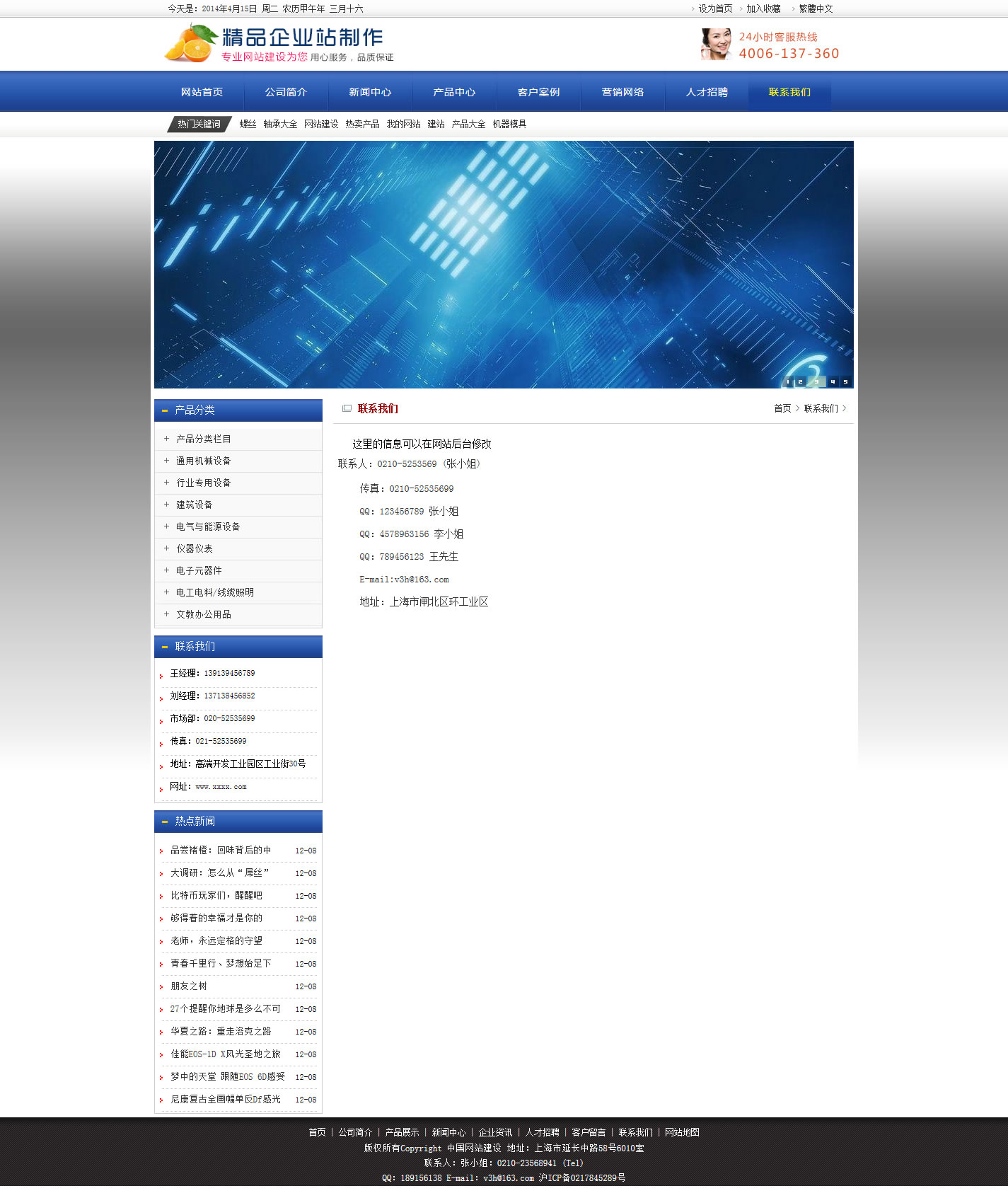 此套模板是一套PC+獨立手機端的的企業模板,相比國外的響應式模板這種組合的網站結構還是挺受我們國人的喜愛的價格:139 元 點擊:123織夢cms大氣重型機械設備公司