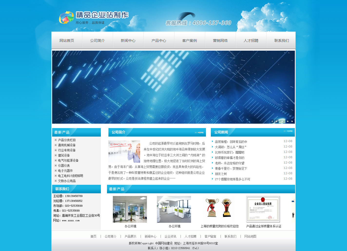 精品藍色企業網站,整體界面大氣時尚,標準DIV+CSS設計,更利于搜索引擎優化。