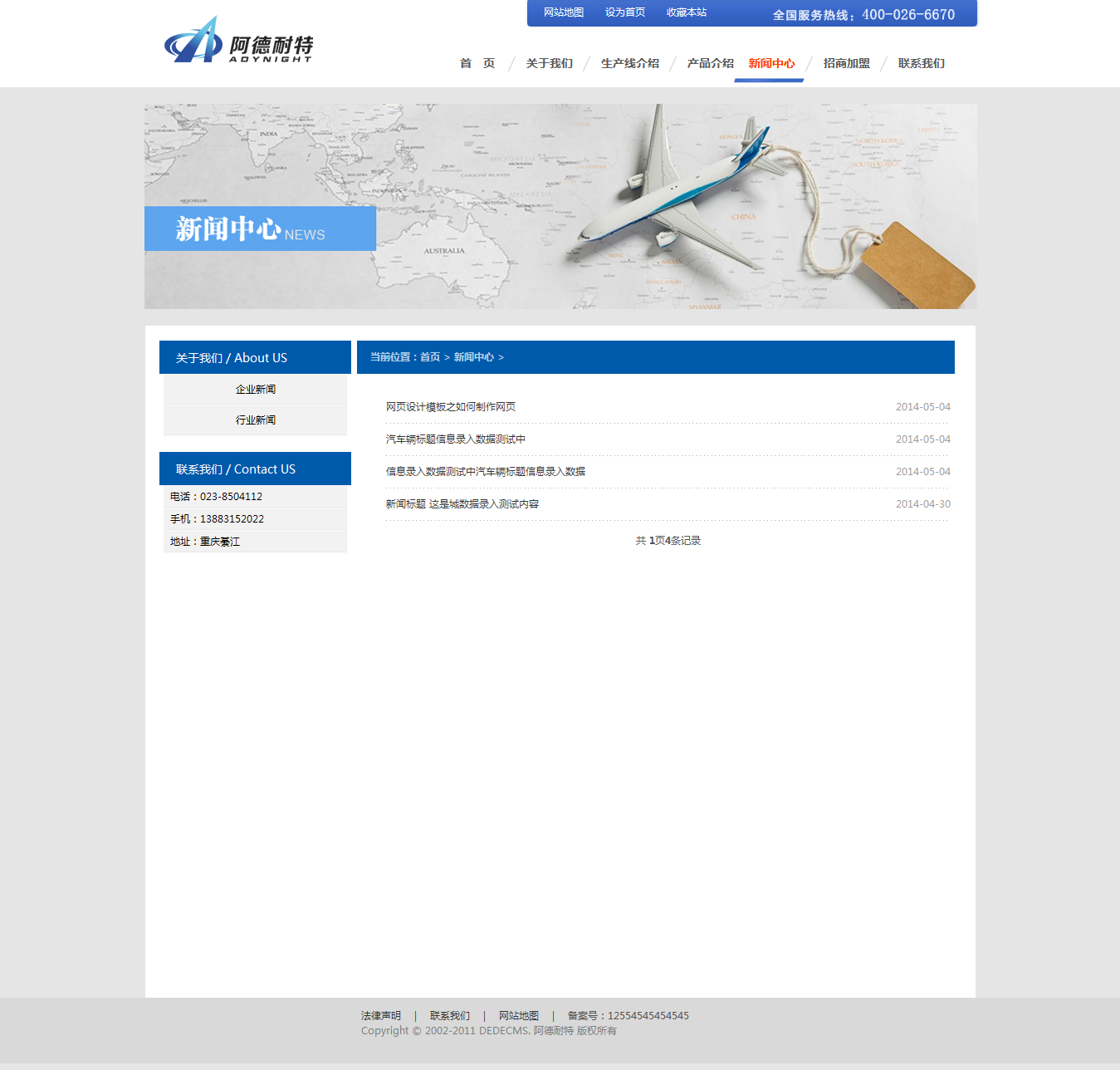 - 織夢藍色企業(yè)網(wǎng)站模板