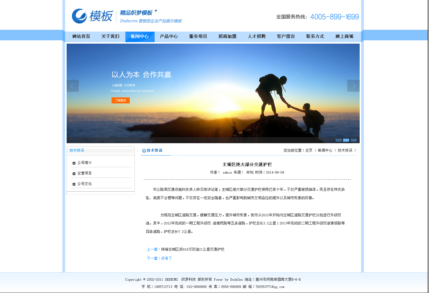 織夢模板-織夢淺藍(lán)企業(yè)網(wǎng)站模板(30元)