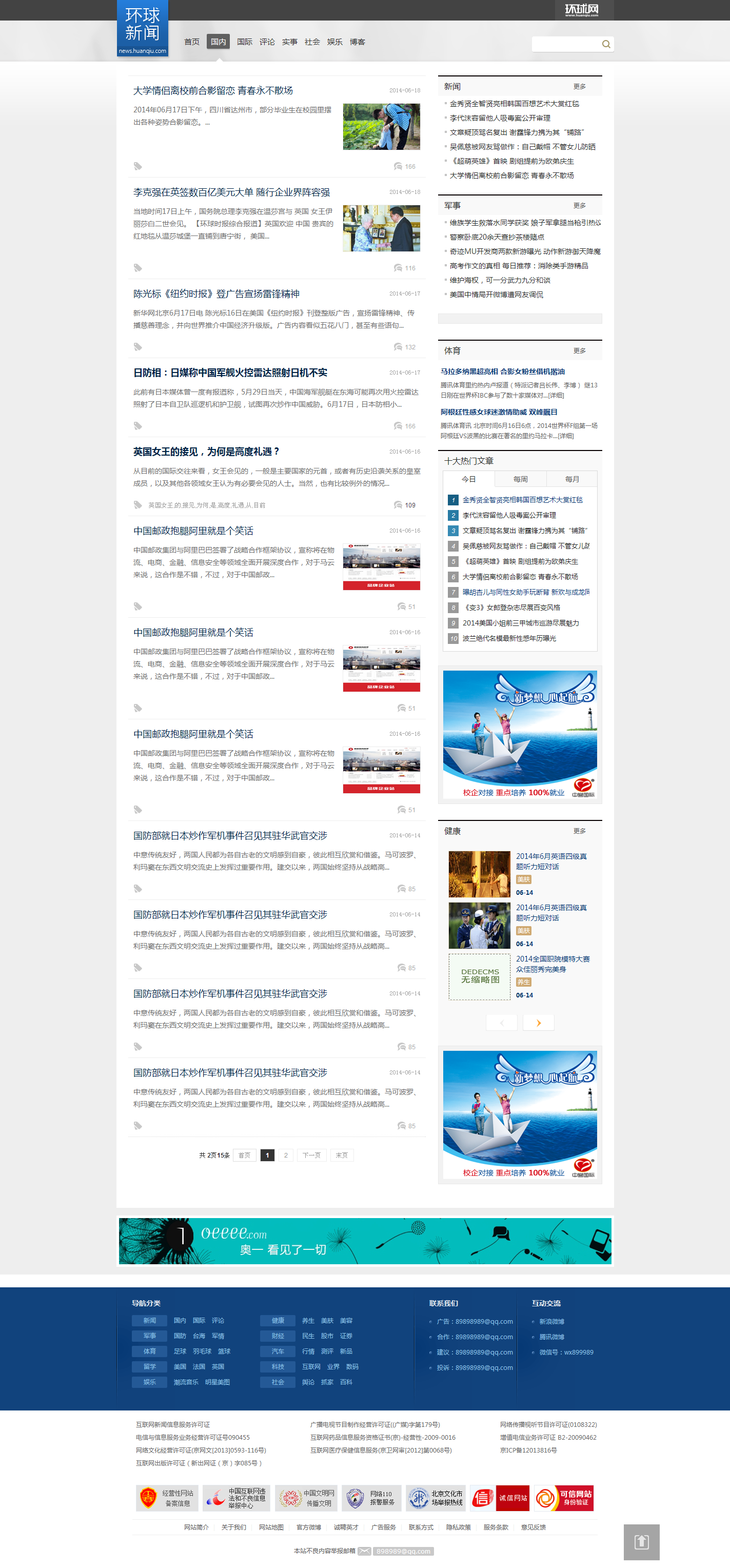 織夢模板-仿環球網織夢新聞門戶網站模板