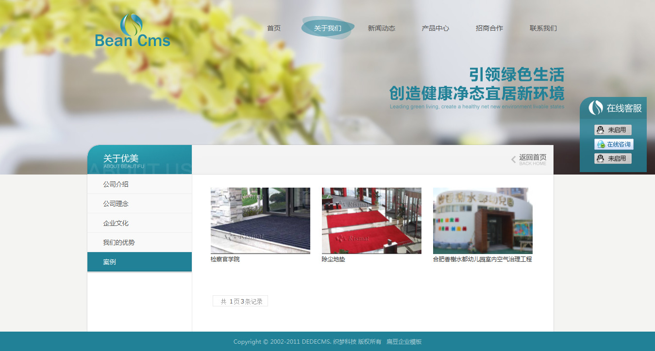 織夢內核開發的綠色環保產品,家用電器,電子產品,冰箱空調,醫療設備,通訊產品等產品展示類模板,網站源碼非常簡介大氣,圖片展示效果非常突出,由織夢dede內核搭建,價格:元 點擊:204織夢cms戶外教育培訓機構公司