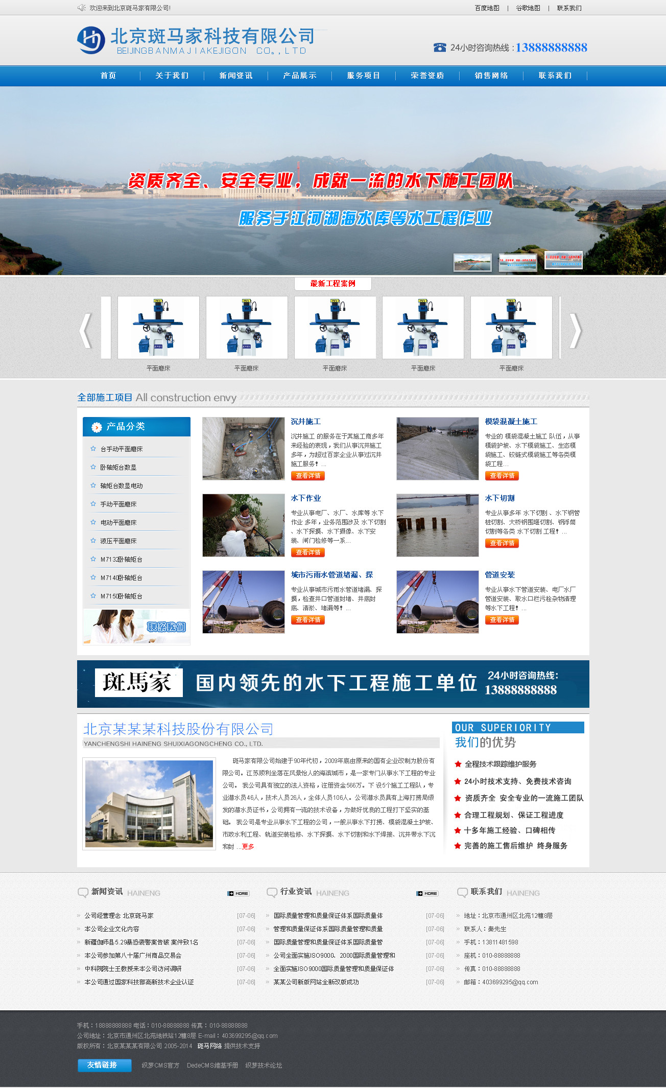 首頁模板包含,海報大圖,滾動產(chǎn)品版塊,產(chǎn)品樹形列表,服務(wù)項目版塊,關(guān)于我們介紹,圖片廣告版塊,公司新聞和行業(yè)新聞列表,聯(lián)系我們版塊;內(nèi)容多布局合理!