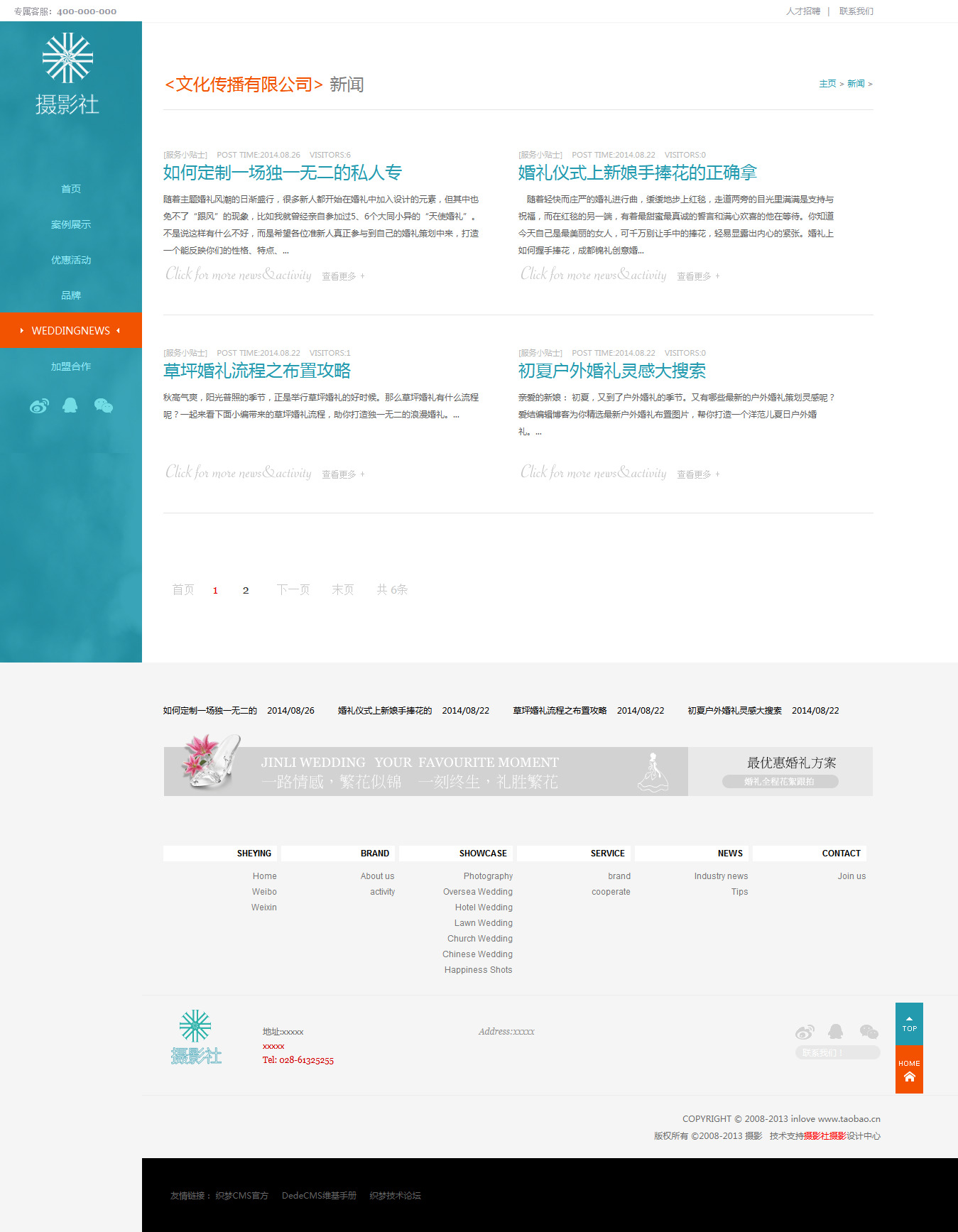 織夢dedecms婚紗攝影婚慶影樓工作室網站模板(帶測試數據)