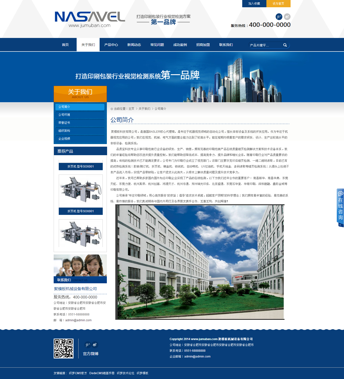 此套模板是一套PC+獨立手機端的的企業模板,相比國外的響應式模板這種組合的網站結構還是挺受我們國人的喜愛的價格:元 點擊:123織夢cms大氣重型機械設備公司