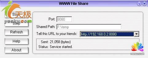 看完操作這會(huì)相信WWW File Share軟件的神奇魅力了吧。趕快到網(wǎng)上下載一個(gè),將好玩的電影、游戲通過(guò)WWW File Share放到網(wǎng)上與朋友們共享吧。