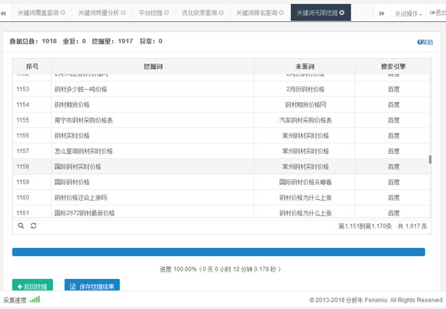 這里我們用平臺長尾關鍵詞挖掘工具,主要優點是能填寫條件篩選,比如下面的挖掘詞我填寫的條件是必須包含“鋼材”和“價格”這兩個詞: