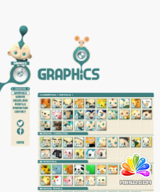 這個網站選用了簡單的二欄式,也是比較常見的一種網頁框架。左欄是導航區,右欄是信息區。鏤空的設計使網站色彩得到了充分的發揮,同時也是結構輪廓更鮮明。導航獨占一欄,更換任何欄目時左欄不變,右欄的信息區展現不同的內容。很好的將網站整體統一,而局部變化的效果適合信息內容量不大的網站情況。推薦做類似設計的是個人心情博客之類的。從另外一個角度上來說,大體采用Html制作,而局部的Flash動畫給網站增添了活力,調動了網站的整體氣氛。而綠頭娃娃的動作變化,讓網站有了靈魂。網站因為這活潑的靈魂而生動有趣,Logo上的圖案不停地變換可愛的老鼠、黑色的小貓,也活躍了網站的氣氛。