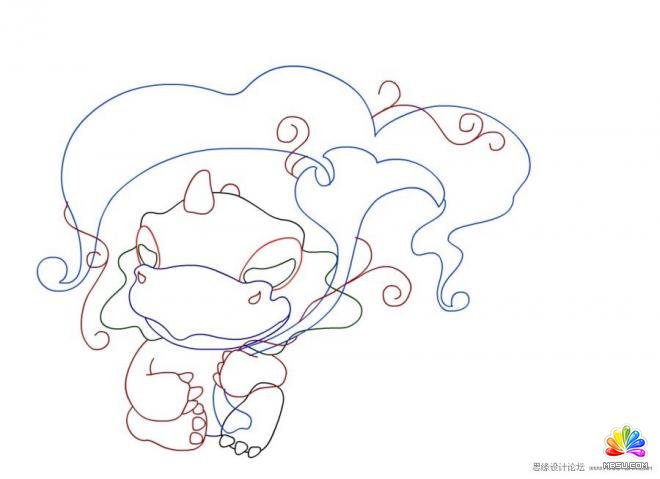 一線條:之前的草稿及構思步驟省略,Flash中勾線,為了便于修改線條和填充顏色,建議不同部位用不同的線條顏色。注意線條的流暢及結構的準確,這個步驟需要反復調整