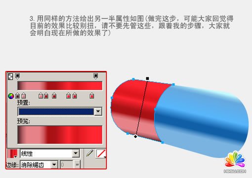 用鋼筆工具繪出膠囊的一半并填充線性漸變屬性如圖: