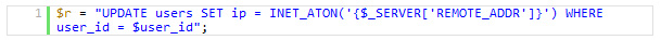 而你的查詢,你可以使用 INET_ATON()來把一個字符串IP轉成一個整形,并使用INET_NTOA()把一個整形轉成一個字符串IP。在PHP中,也有這樣的函數 ip2long()和long2ip()。
