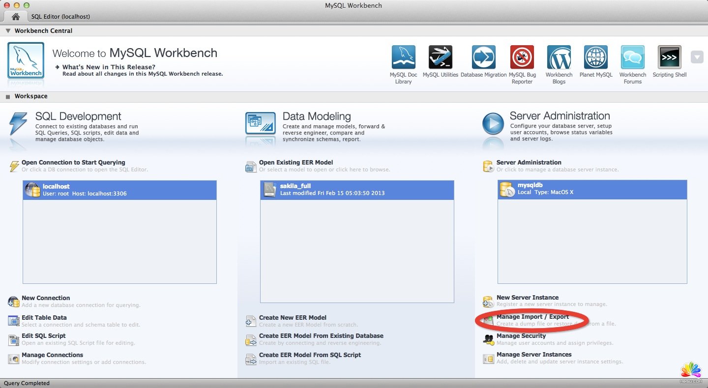 一、導(dǎo)出數(shù)據(jù)。先說明一下自己的環(huán)境:Mac OS X 10.8.3, MySQL Community Server 5.6.10, MySQL Workbench 5.2.47。