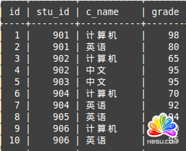 mysql> select c_name,min(grade) from score where c_name='中文';