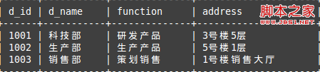 此處首先查詢出department表中所有d_id字段的信息,并將結果作為條件
