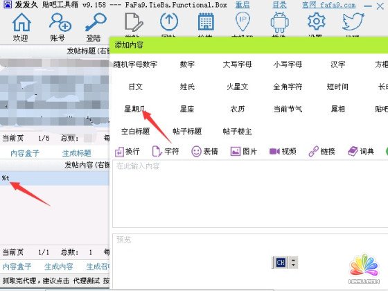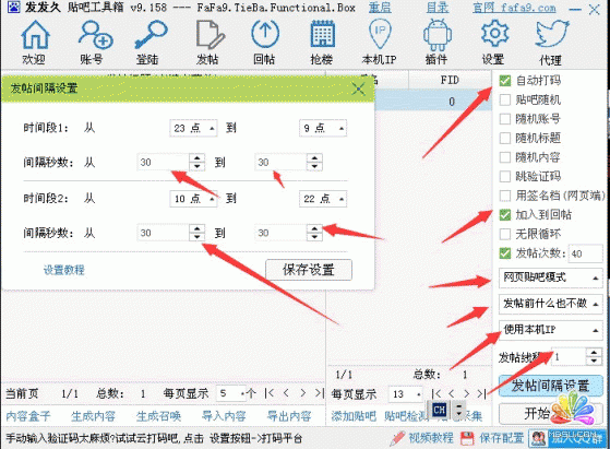 成功發帖后帖子直接被工具導入回帖菜單中,還是同發帖一樣把它設置好。