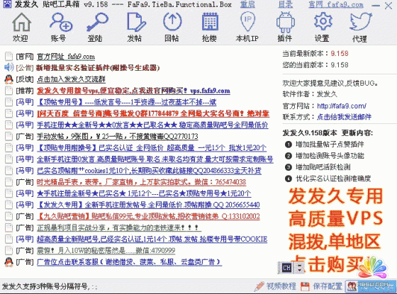 完美文字爆吧第一步準備好全國VPS混撥(VPS混撥簡稱:是一個虛擬的服務器,幾百個地區撥號資源融合在一起,IP在這些地區IP隨機跳),從而不斷更換IP實現每發一個帖子都是不同的IP發出,不至于在同一IP下被系統秒刪。