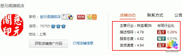 通過上面的分析,一個店鋪的單品能達到月銷量幾千,基本上都是高等級的店鋪了,所以要先點這家慈元閣旗艦店看看,找到其店鋪主頁(ciyuange.tmall.com)看看他的信用、商品列表,我一般都選擇持平或者高于平均水平的,如果是低于平均水平產品質量多少是有問題的,客戶購買率不會太高,建議排除。主要是產品描述分數不能低于平均,發貨速度和服務質量其次。