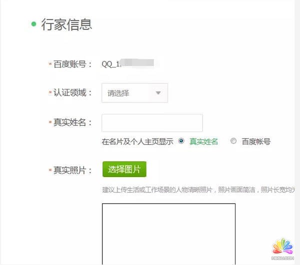 百度行家原則上所有人均可申請,申請需要填寫個人資料和能夠證明是行業專家的資料,如資格證書、工牌、工作證明等,申請頁面如下圖所示。