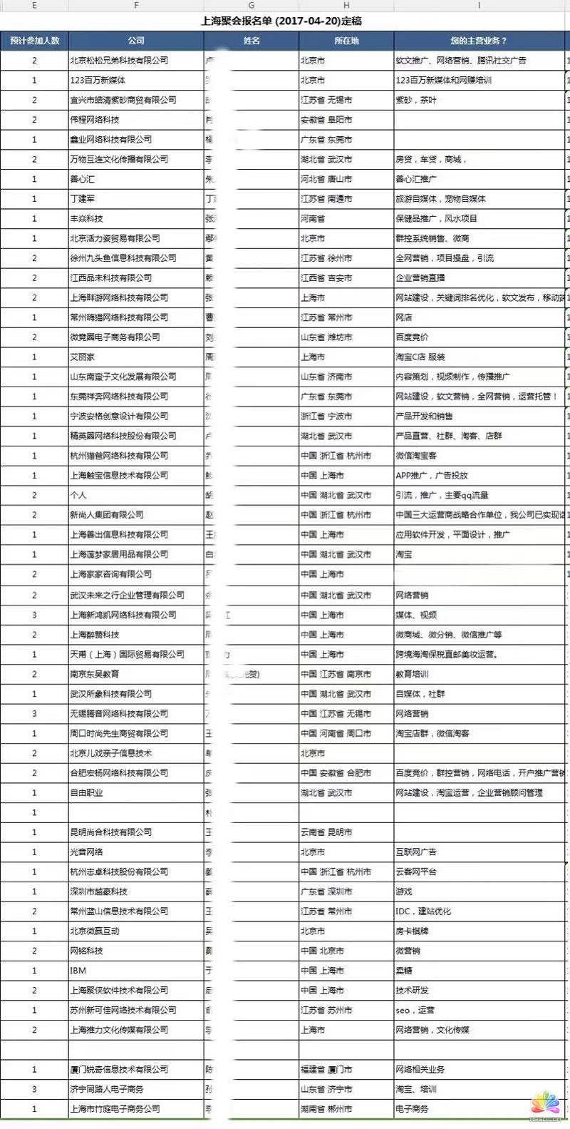 下圖為參會人員名單,組織一場有規格的聚會,實際上登記這份名單是最困難的,每個人的需求點不同,這個名單就要不斷修改,我們22號開會,直到21號才正式把名單及需求定下來。
