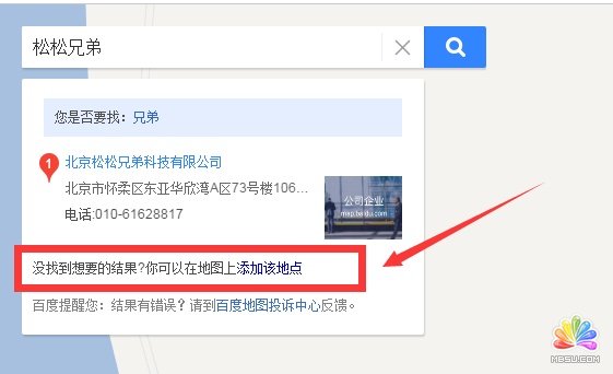 如箭頭所示,商戶標注成功后會直接顯示在百度地圖中,更方便。