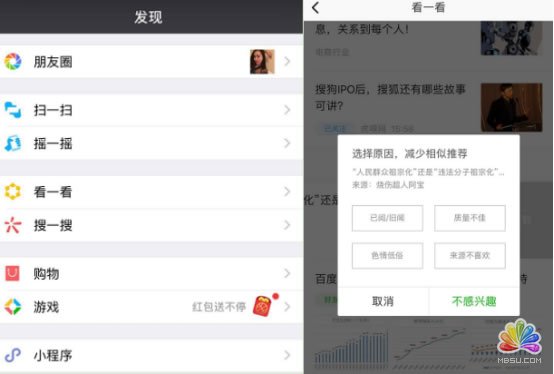 如果把訂閱號現(xiàn)在單個“信息孤島”形式改版為以信息流形式展示,的確能給一些中長尾公眾號分配一些流量,這不過是把“看一看”放置在訂閱號位置。而就筆者體驗“看一看”功能,發(fā)現(xiàn)盡管有編輯進行熱點歸納和運營,但加入了很多不相關的公眾號,一般用戶連續(xù)點三次“不想看見”,很容易放棄這個“入口”。