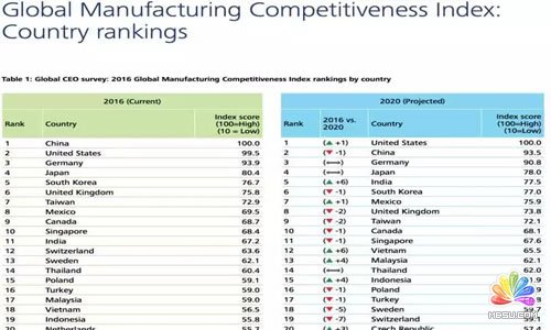 這里給大家提供一些其它角度直觀數(shù)據(jù)。德勤(Deloitte)剛剛出了一份長篇報告,"Global Manufacturing Competiveness Index", 全球制造業(yè)競爭分析。下面是一些宏觀數(shù)據(jù)。