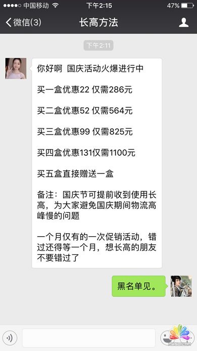 案例1、這個人沒有用心打造個人IP,賣貨靠的全部硬廣告,不僅朋友圈各種刷屏各種硬廣各種促銷,還喜歡頻繁群發(fā),甚至連名字都直接以產(chǎn)品功效來命名,生怕別人不知道他是賣增高產(chǎn)品的。