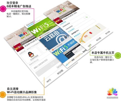 免費wifi作為一種商業新動向,有更高的商業利用空間。 WiFi5廣告路由(www.wifi5.com) 除了為商家定制專屬頻道,用來吸引客流,提升商家自身形象,還可以提供多種互動營銷工具和娛樂內容。通過收集用戶資料和消費行為數據,進行管理和分析,為商家改善和調整經營策略提供最為切實的數據。