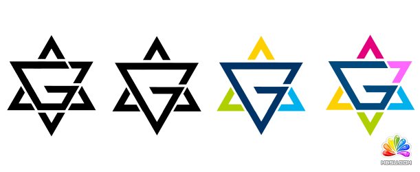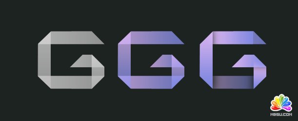 我們嘗試著用圖層的變化關(guān)系來尋找思路。這張圖上的“G”字,我們可以看作是1步、2步、3步。可以看出是一張純色的透明到漸變色的效果,再到多漸變色圖層疊加而產(chǎn)生的效果。因為我想看到比第2個G字更濃烈的對比會是什么樣子。